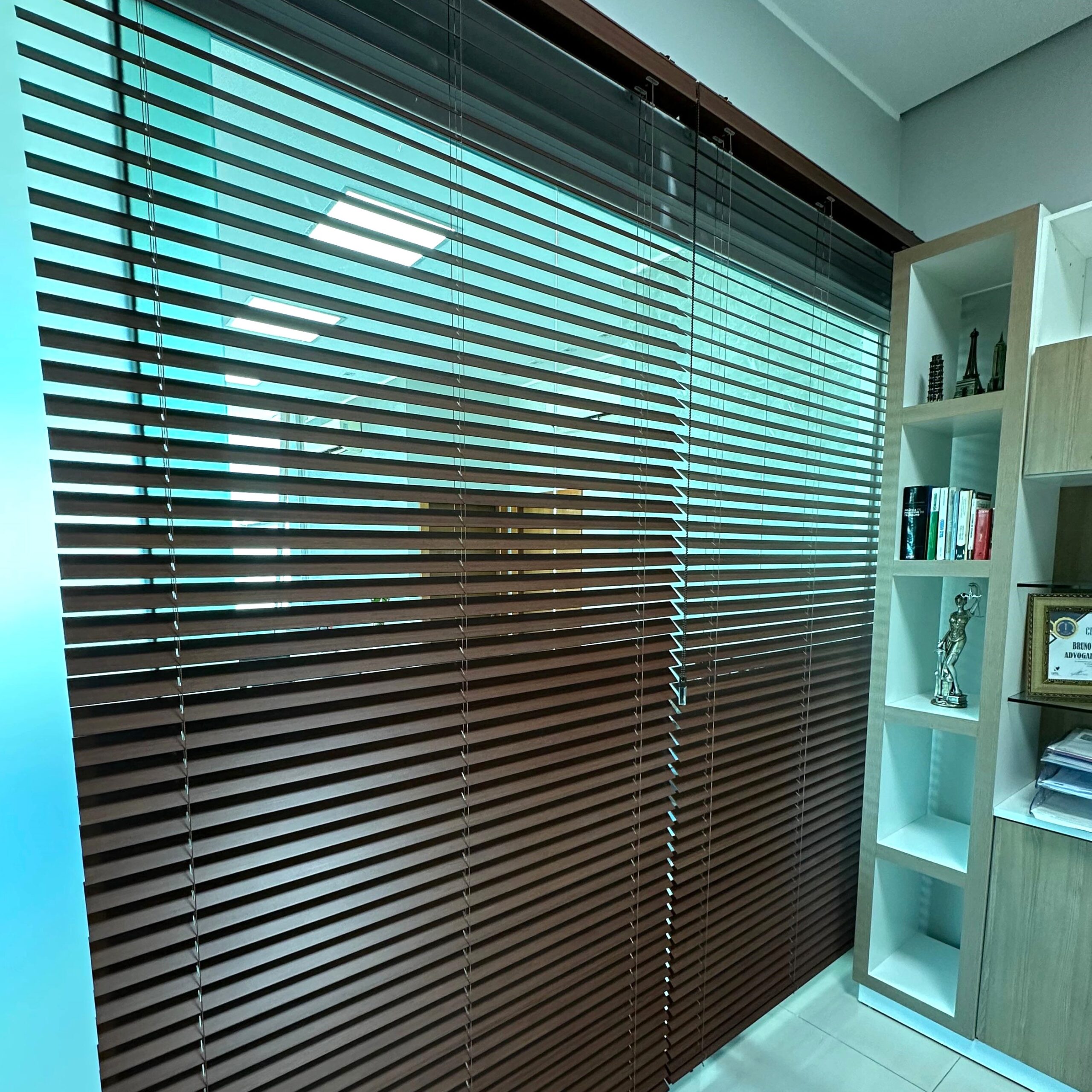 Nossas persianas de madeira são fabricadas com lâminas de madeira maciça com tratamento especial.
